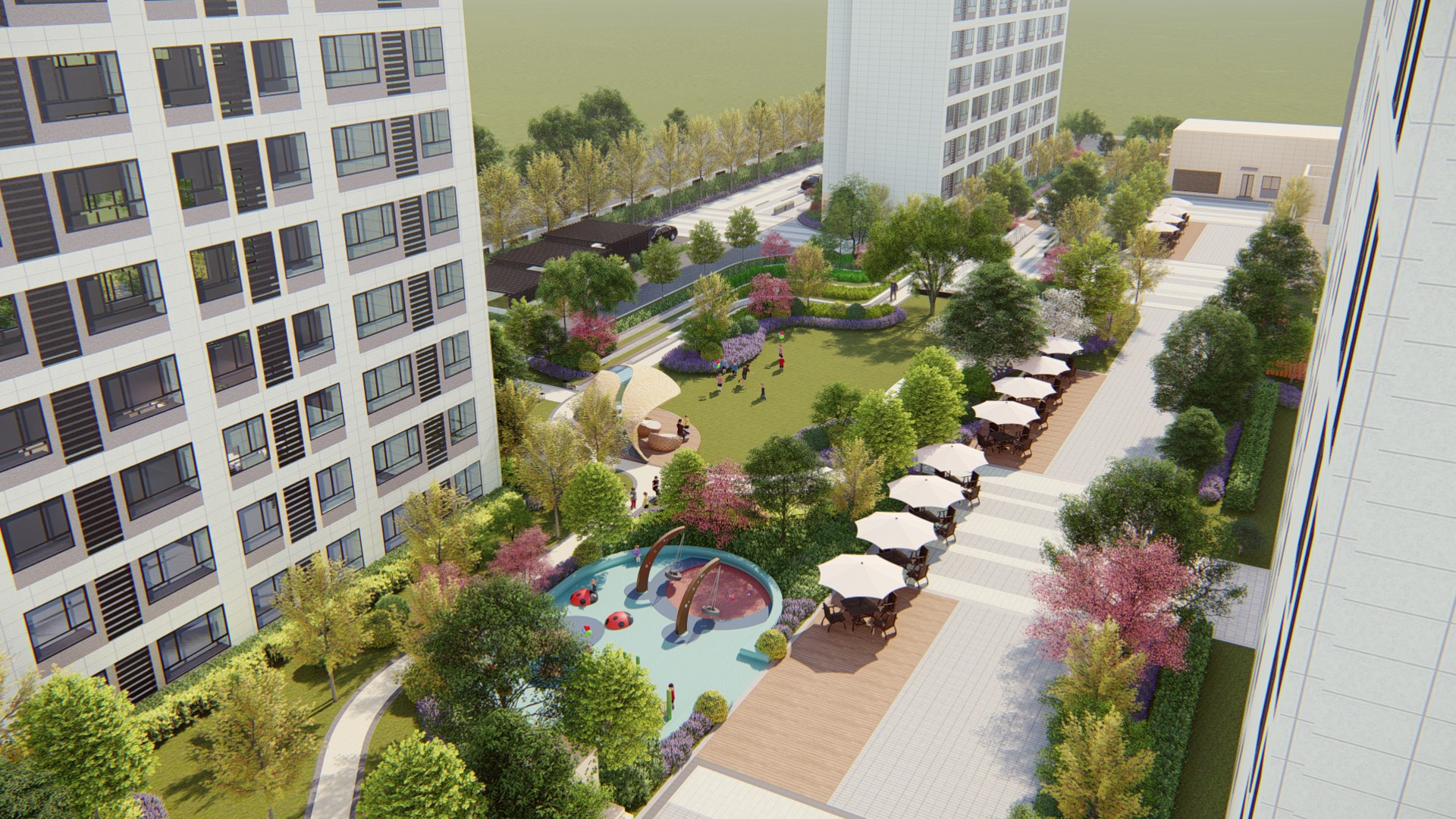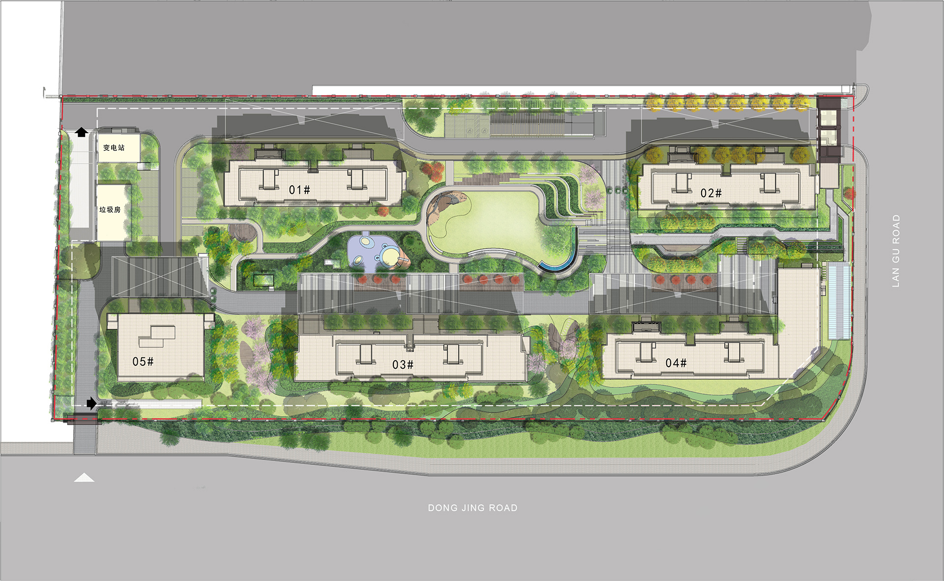 杨路公共绿化A2-7地块、北至A2-2地块学校,南至东靖路,景观总面积约为13259平方米。