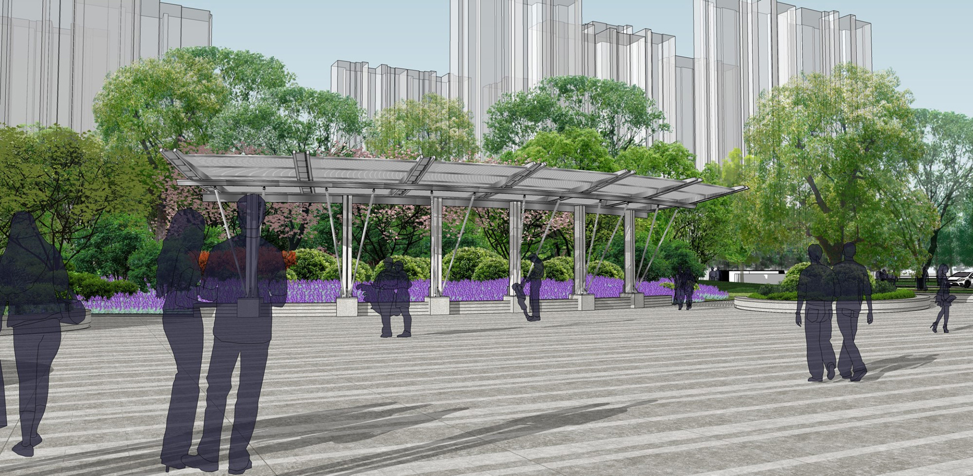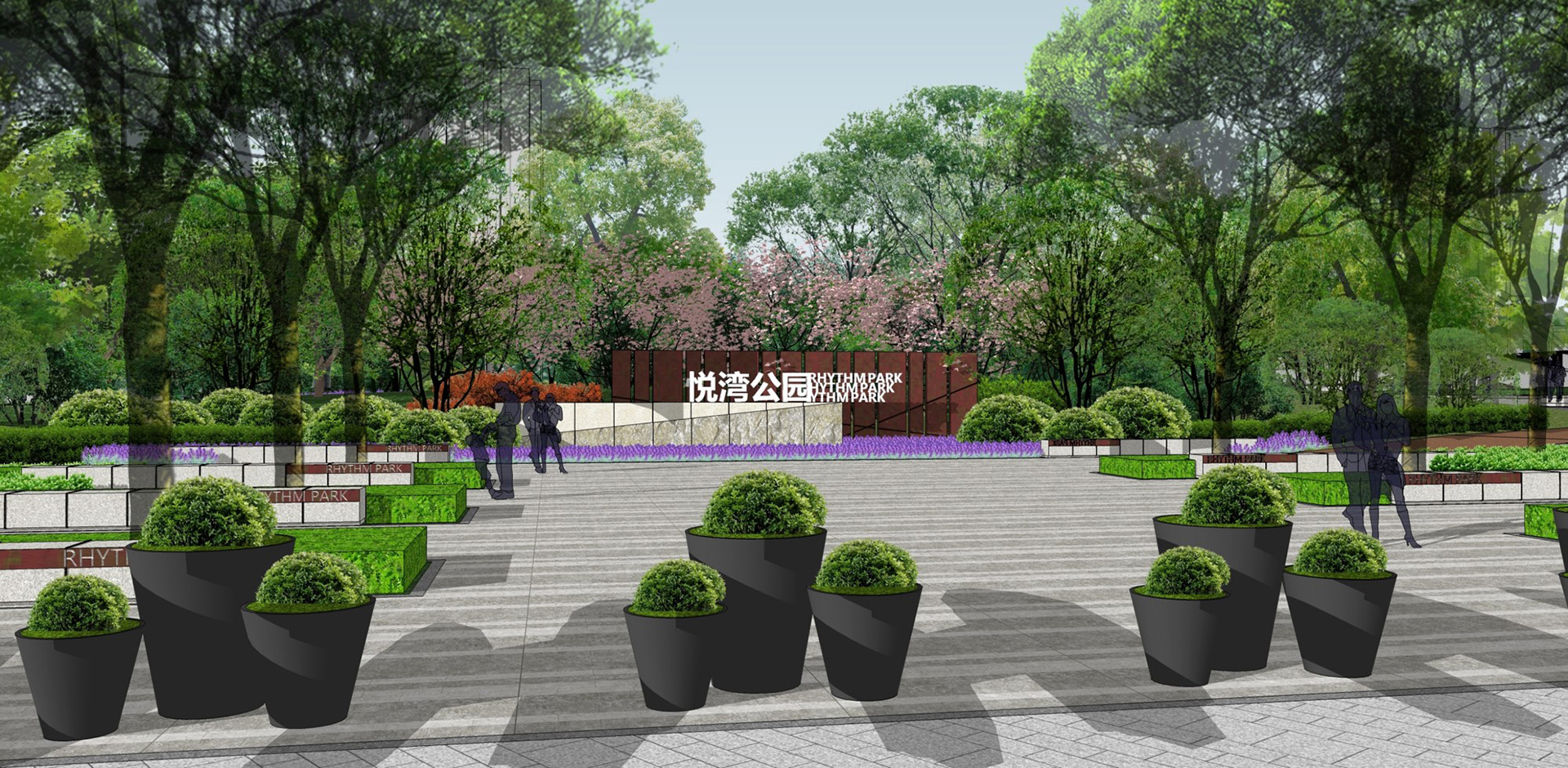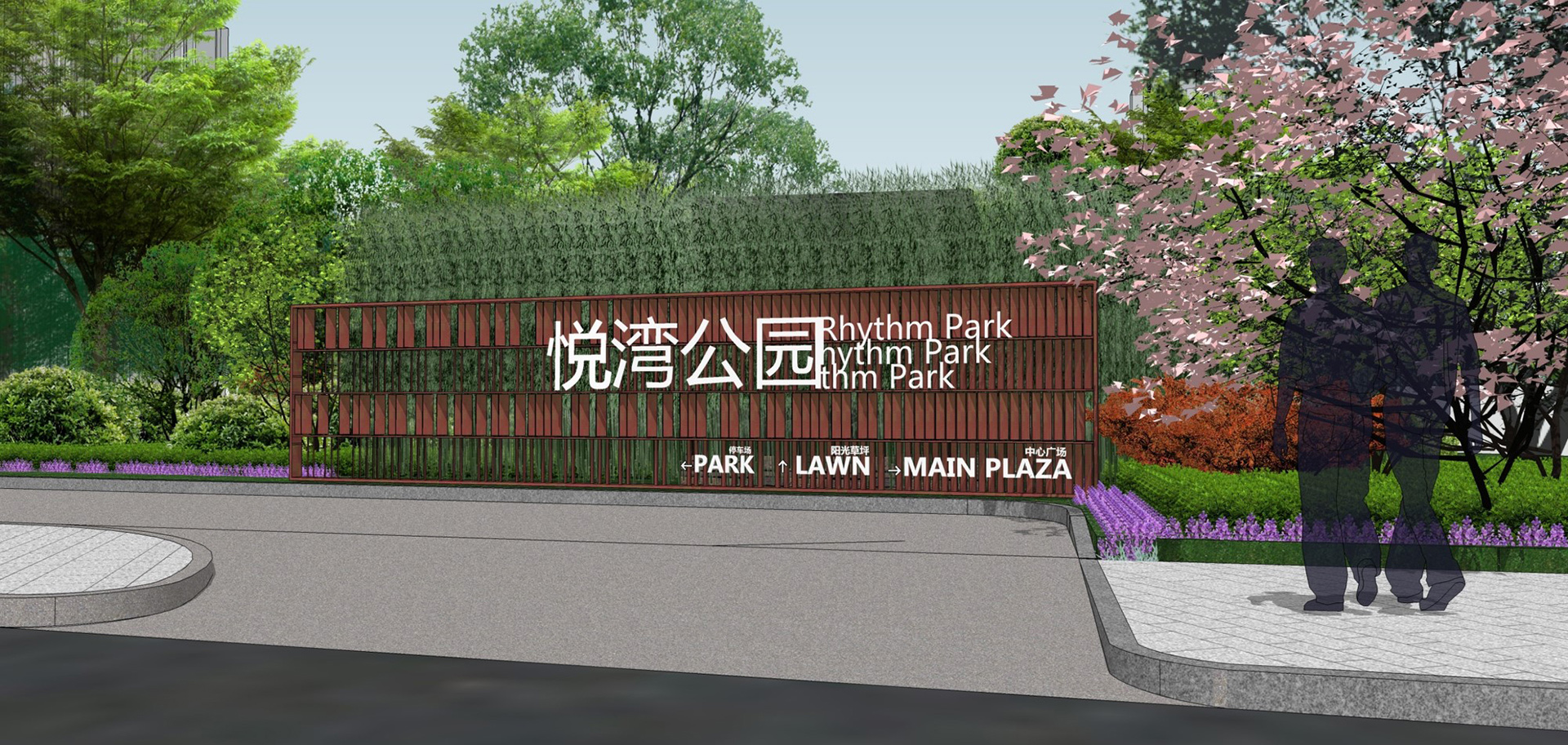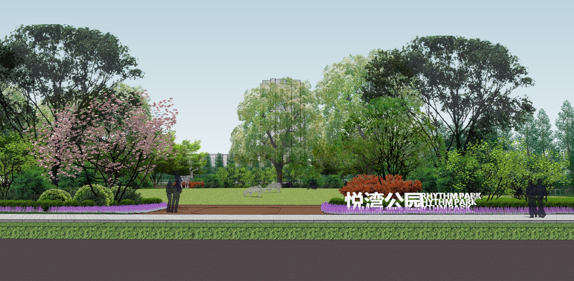 健身功能为主,同时营造城市绿色、生态公园。公园南侧绿化层次丰富,有效阻隔外围噪音,北侧营造视线开阔的活
