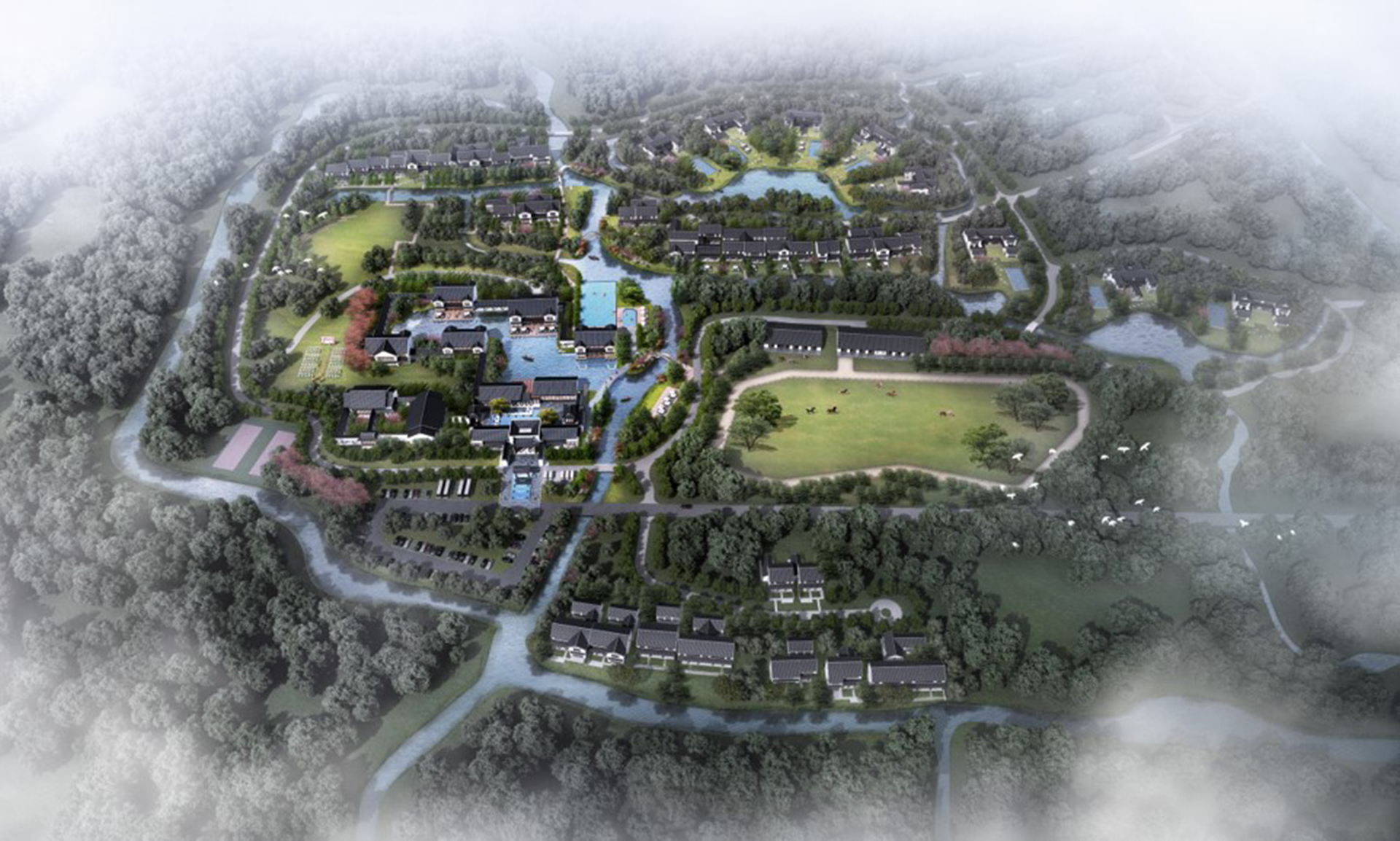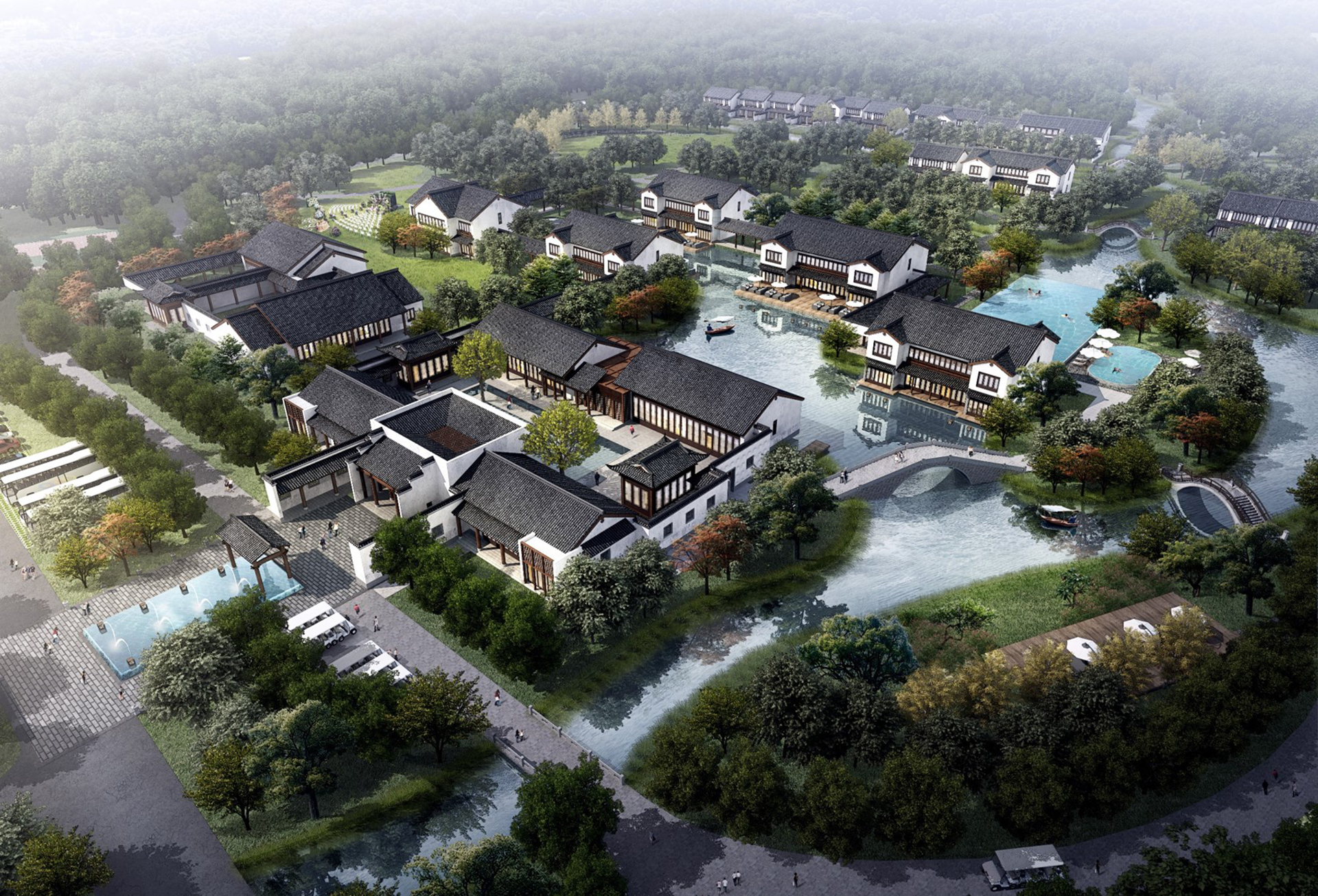 用地面积251.7万平方米,发挥生态资源特色:林+水,弥补文化短板,设计力求打造高端会议、宴