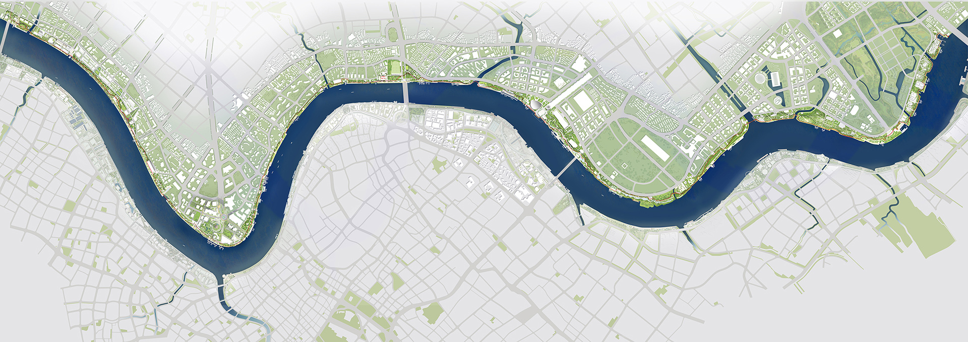 市民舞台与城市客厅。东岸开放空间贯通的建设,共享人们生活和东岸的发展,将黄浦江东岸从工业时代