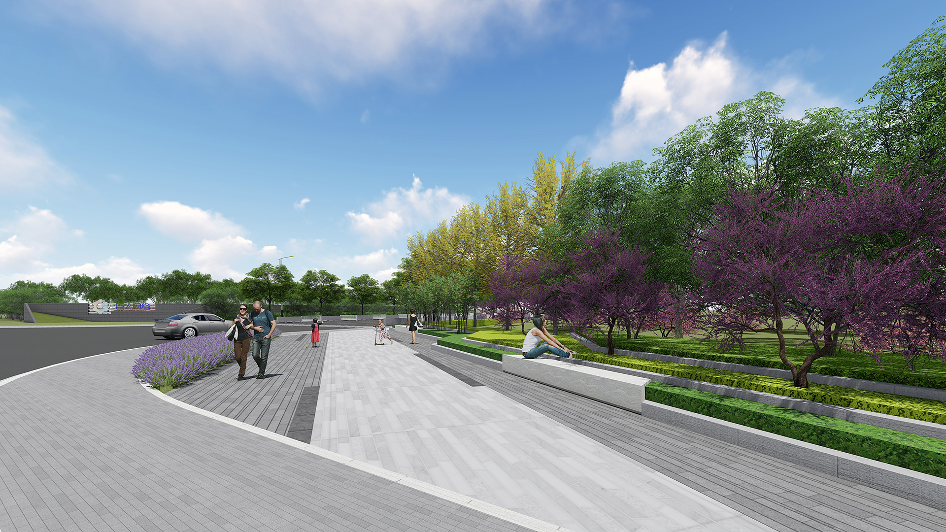 道,并融入海绵城市的理念,实现雨洪管理;充分尊重地域文化,融入场地文脉,结合铺装、座凳、雕塑等景观元素,