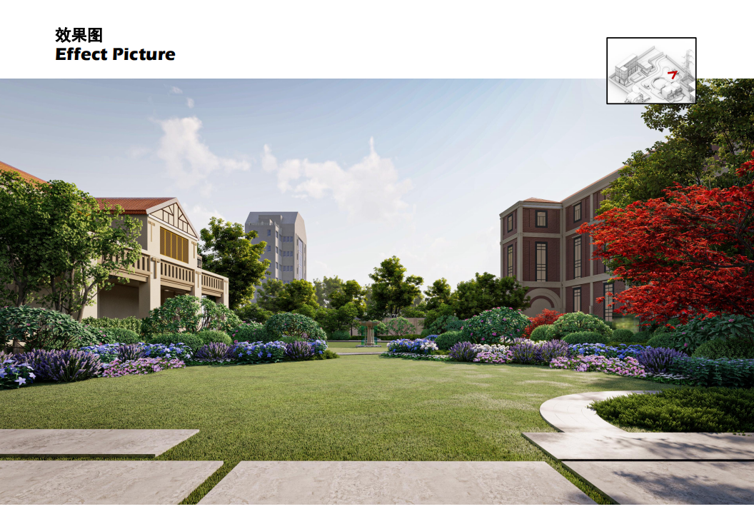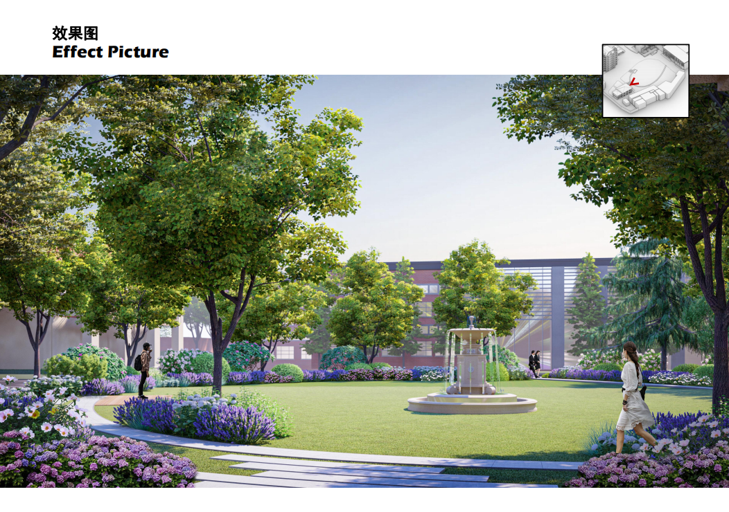 设计场地内部建筑与景观体系整体综合偏向于欧式风尚。园区内部植物丰富,特种造型树木品种优良,观赏效果佳。