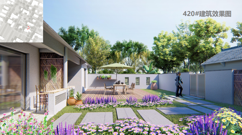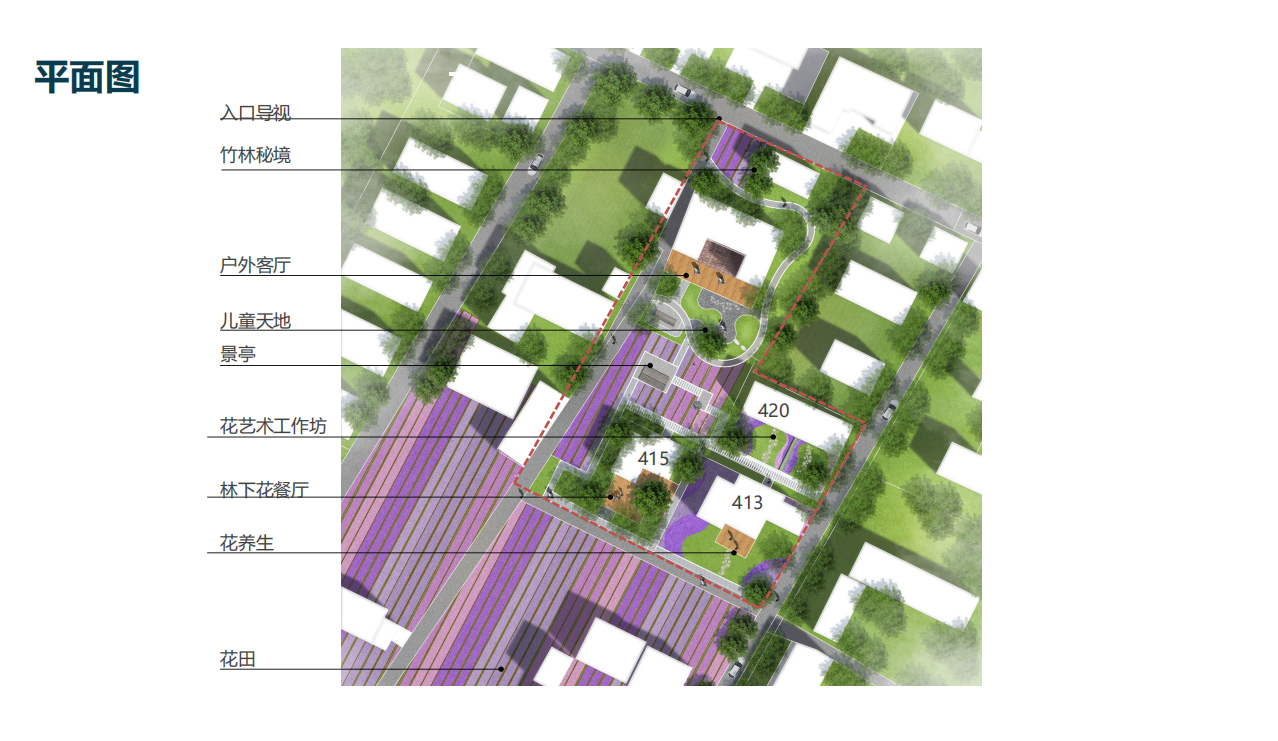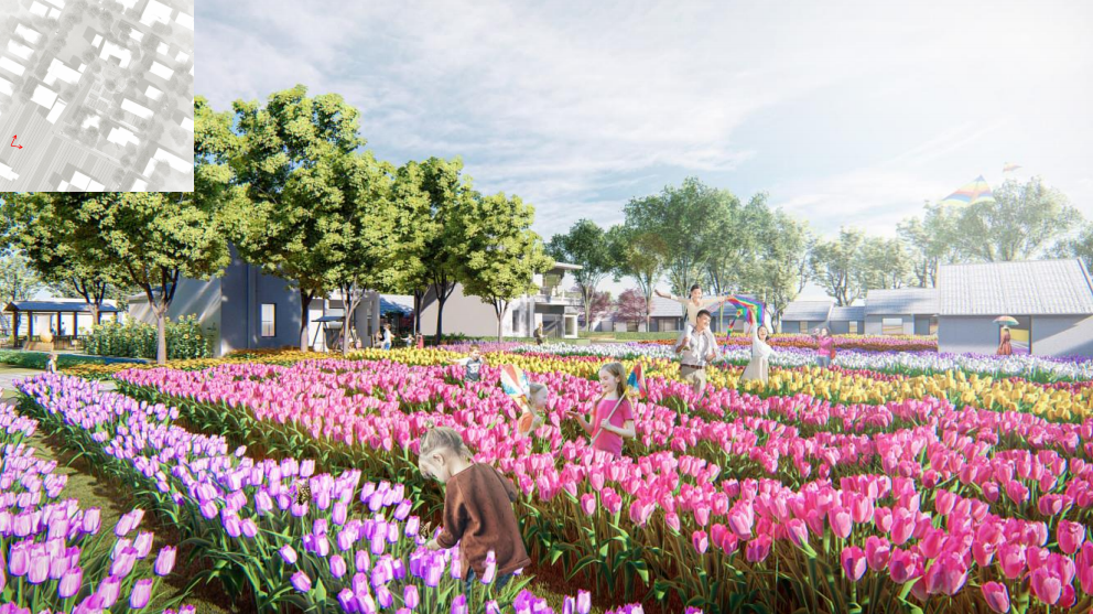 地块位于启动区“花鸟宿集”西北角,是提供游客集 住宿、餐饮、休闲娱乐的基础设施区域。